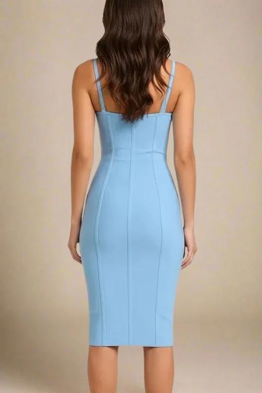 The Abi Blue Bandage Dress is the ultimate sexy blue dress for any special occasion. If you're looking for the ideal blue Party Dress or Cocktail Dress, this style features spaghetti straps, a fitted sweetheart neckline, soft breathable fabrics and knee length dress finish. More on the plus size? Our bodycon dresses range in all sizes, so shop that bodycon wardrobe you've always wanted, today.Â